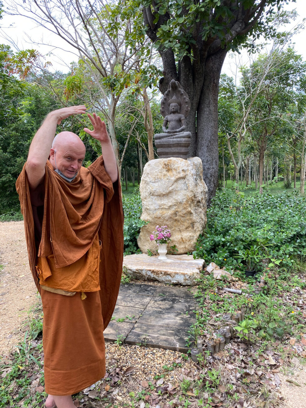 As I was walking back to the women’s house with my coffee in hand, a lightness in my heart, Mike pulled me aside to tell me some bad news: he tested positive for Covid that morning. His symptoms were very mild, but we wouldn’t be able to stay with the group. Earlier in the trip, the Ajahns had asked us to pair up to ensure no one got lost on the trip – Mike was my “buddy-sattva” so we were in this together.